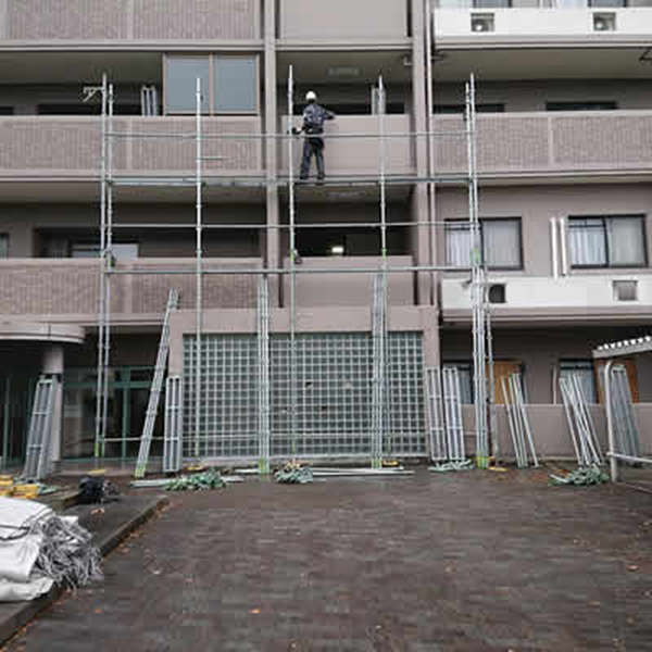 午前中に足場を組んで、午後からは高圧洗浄です。