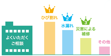 このような事にお困りではないですか! ●小さな修繕工事が後回しになっている ●管理組合様からの要望に早く応えたい ●工事の規模が小さいと業者に頼みにくい …