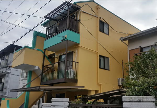 ビルの漏水に伴う外壁塗装工事を行いました。 ◆工事内容◆仮設工事、外壁補修工事、シーリング工事、塗装工事 ▼施工前▼ JR吹田駅近く。商業ビルが立ち並ぶ商店街の…