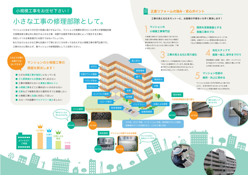 マンションの小規模工事に迅速、丁寧、まごころ対応しています。