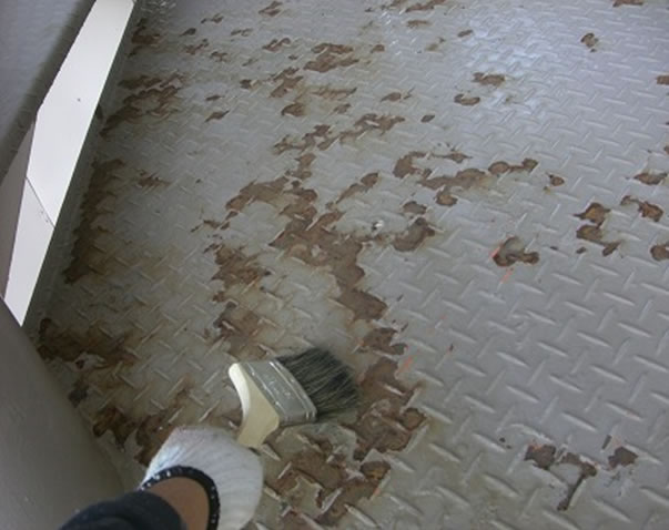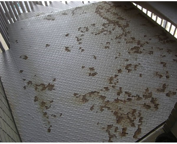 外部鉄骨階段の経年劣化で、錆びついて、塗料もはがれていました。